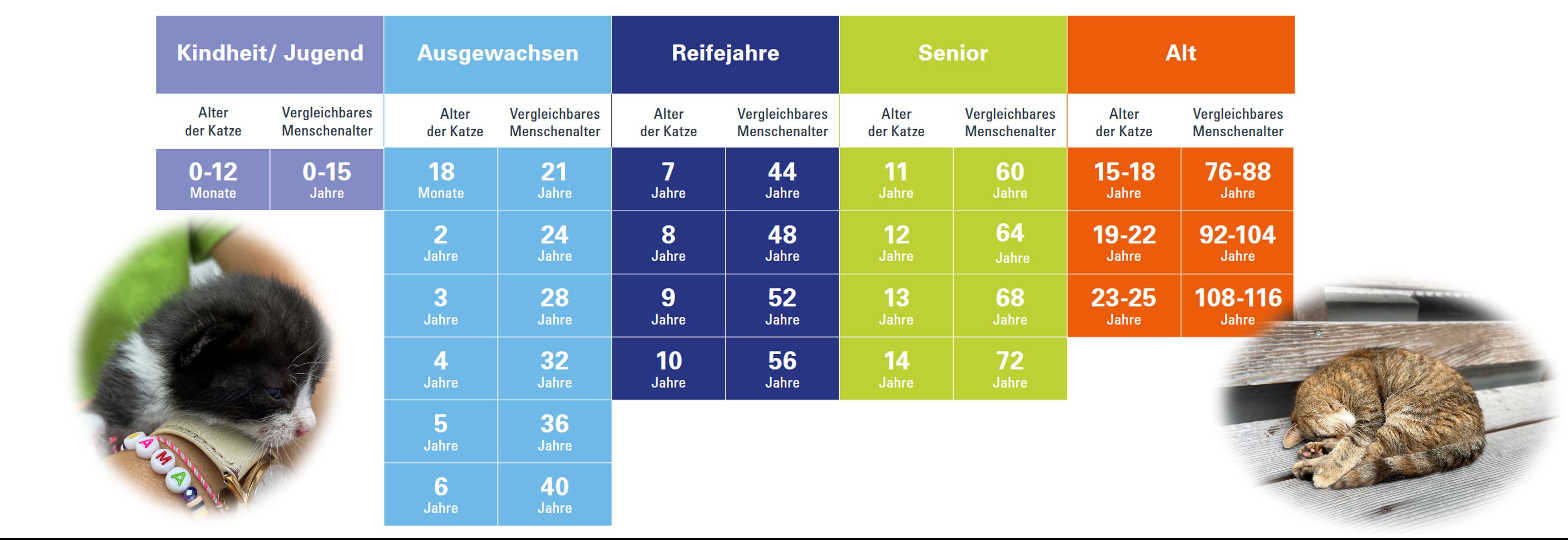Hier sehen sie in welchem Lebensabschnitt Ihre Katze steht.