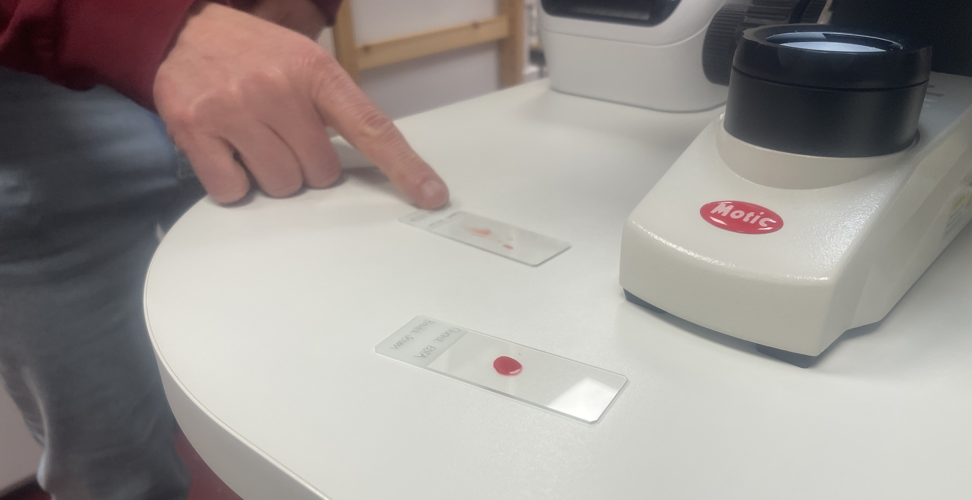 Hunde besitzen unterschiedliche Blutgruppen. Bei der ersten Transfusion spielt das keine Rolle aber weil wir wussten, dass die Patientin bereits früher einmal eine Transfusion erhalten hatte, wurde mittels einer Kreuzprobe überprüft, dass das gespendete Blut verträglich war. Dies ist entscheidend für eine sichere Transfusion.